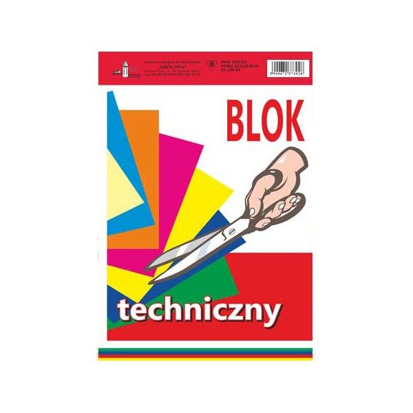 Blok techniczny A4 z kolorowymi kartkami 12 sztuk.