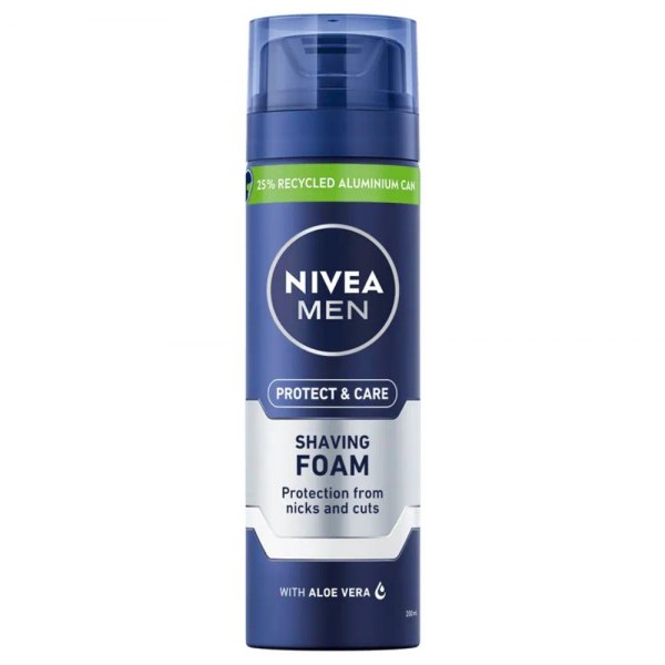 Ochronna formuła pianki do golenia NIVEA MEN Protect & Care została wzbogacona o aloes i prowitaminę B5. Dzięki temu dba o skórę twarzy oraz chroni ją przed wysuszeniem i zacięciami podczas golenia. Nawilża skórę oraz wzmacnia jej naturalną barierę ochronną. Wybierając ten kosmetyk do golenia, masz pewność, że golenie będzie dokładne, komfortowe oraz przebiegnie gładko!