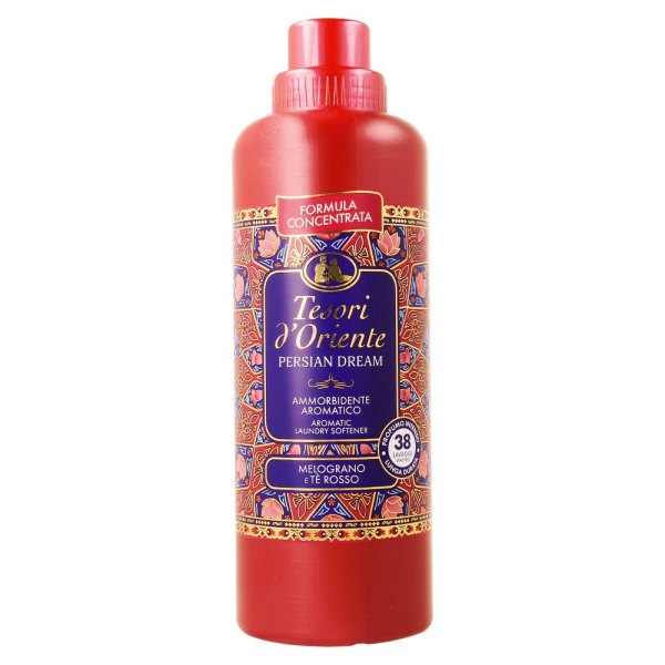 Płyn do płukania Tesori d oriente Persian Dream o zapachu granatu i czerwonej herbaty, tworzący wyjątkową i urzekającą esencję. Płyn Tesori d Oriente ma skoncentrowaną i kremową formułę. Zmiękcza włókna i redukuje osady mineralne, ułatwiając prasowanie i zapewniając wyjątkową miękkość. Oryginalny zapach Tesori d Oriente długo utrzymuje się na ubraniach, tworząc orientalną podróż.