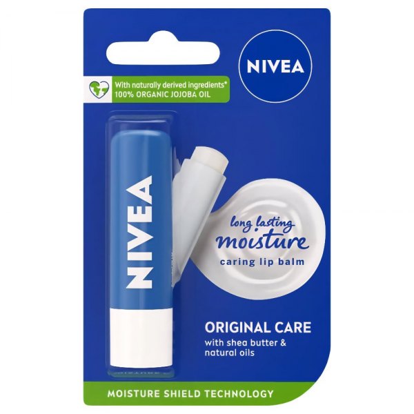 Zapewnij swoim ustom ochronę i nawilżenie! Ochronna pomadka NIVEA Original Care to wyjątkowo pielęgnująca formuła ze składnikami pochodzenia naturalnego, naturalnymi olejkami i masłem shea. Sprawia, że usta stają się niezwykle miękkie i nawilżone, a także zapewnia im ochronę przed wysychaniem. Przyjemna i jedwabista konsystencja pomadki ochronnej natychmiast wtapia się w Twoje usta, zapewniając im nawilżenie. Ciesz się zdrowo wyglądającymi i naturalnie miękkimi ustami przez cały dzień, niezależnie od pogody! Wygodna forma ochronnej pomadki w sztyfcie jest idealna do noszenia zawsze przy sobie - w kieszeni czy w torebce.