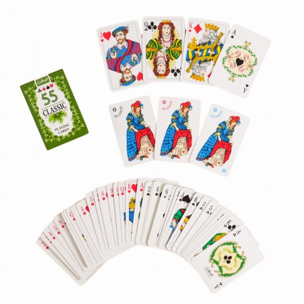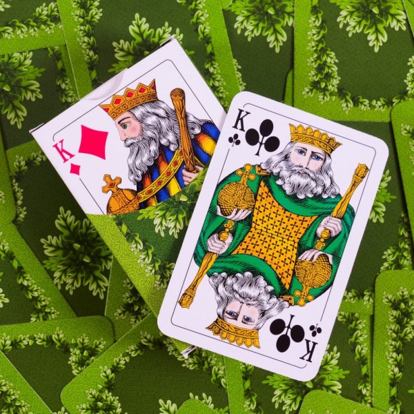 Bursztynowe i zielone rewersy ozdobione są liśćmi dębu, a figury i kolory oznaczone międzynarodowym wzorem. Karty są odpowiednie do wszystkich rodzajów klasycznych gier karcianych. Talia zawiera 55 kart.