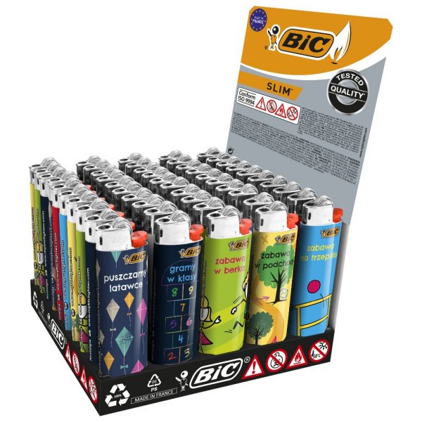 - Produkowane w fabrykach BIC w Hiszpanii i Francji zapalniczki spełniają lub przewyższają międzynarodowe normy bezpieczeństwa
