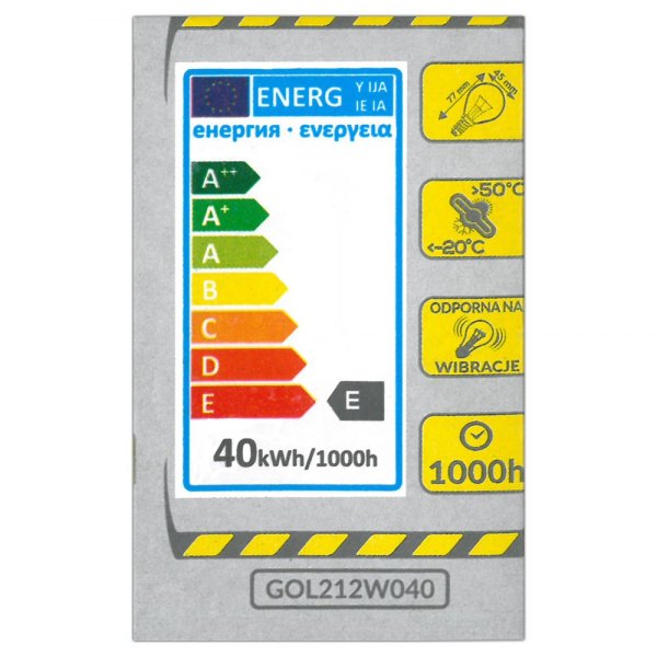 - klasa energetyczna żarówki: E