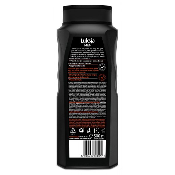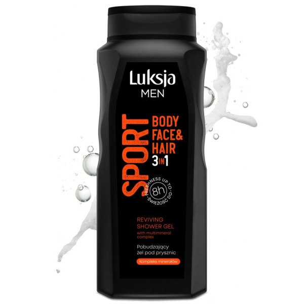 Pobudzający żel pod prysznic 3w1 Luksja Men Sport przeznaczony do ciała, twarzy i włosów usuwa zanieczyszczenia, jednocześnie dbając o skórę. Został wzbogacony o minerały, które stymulują uwalnianie energii oraz zapewniają ultraorzeźwiający prysznic.